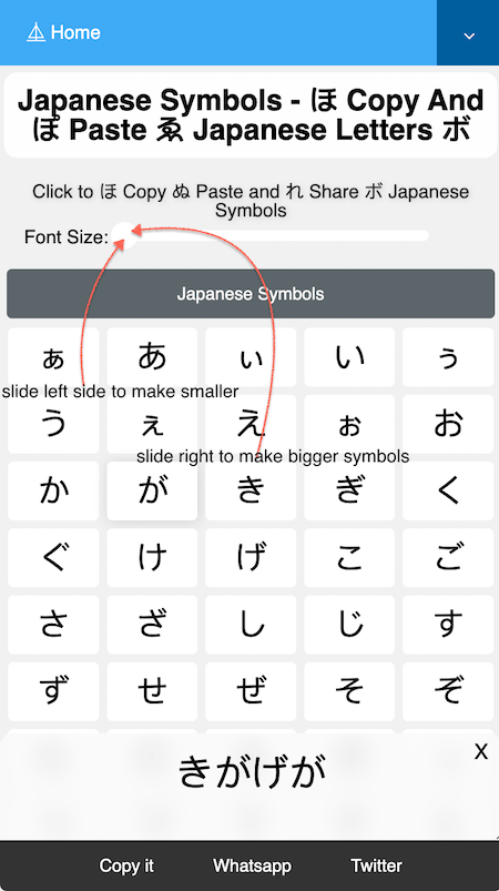 It is easy to make ㍿ Japanese symbols bigger and smaller. You have to just click on the Font Size: input range bar then slide on the right side to make symbols bigger, or slide on the left side to make symbols smaller.